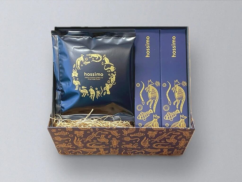 hossimoオリジナル『干し芋専用ブレンドコーヒー』ドリップバック4袋と、無農薬・無化学肥料、自然栽培の茨城県産紅はるかの丸干し芋&平干し各4個入りのギフトセットす。 お渡し用の紙袋もセットです。 熨斗、メッセージを付けることも可能です。 ご希望の方はオプションよりご選択ください。 ※写真はイメージです。 ※メッセージをつける場合、ご注文情報入力時『備考欄』にメッセージ内容をご入力ください。